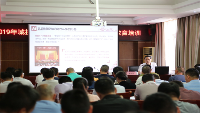 發(fā)布時間:2019-04-30 作者:文:梁宇 嚴(yán)海珍 圖:陳世染 岑瀚 來源:本站原創(chuàng) 審核:鄧永劍為全面提升工程項(xiàng)目管理水平,增強(qiáng)廉政風(fēng)險防范意識,提高反腐倡廉能力與水平。2019年4月29日,城投集團(tuán)在七樓大會議室舉辦工程管理人員業(yè)務(wù)知識及廉潔自律教育培訓(xùn)。集團(tuán)安全管理人員、法務(wù)審計(jì)人員、工程技術(shù)人員等相關(guān)業(yè)務(wù)人員80人參加了培訓(xùn)。本次培訓(xùn)由市城投公司高級工程師黃彬、賀州市紀(jì)委駐賀州市國資委紀(jì)檢組組長陳開鏗主講。培訓(xùn)內(nèi)容包括工程管理理論知識、工程管理人員廉潔教育等知識。