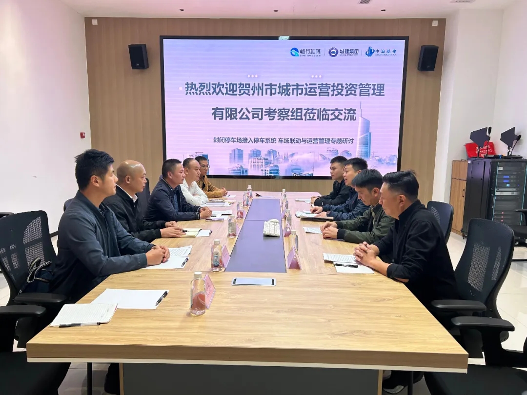 近日,賀州市城市運營投資管理有限公司黨總支部書記、執(zhí)行董事陳劍鋒一行6人,到桂林中海基建投資有限公司“暢行桂林”運營中心開展專項考察交流。